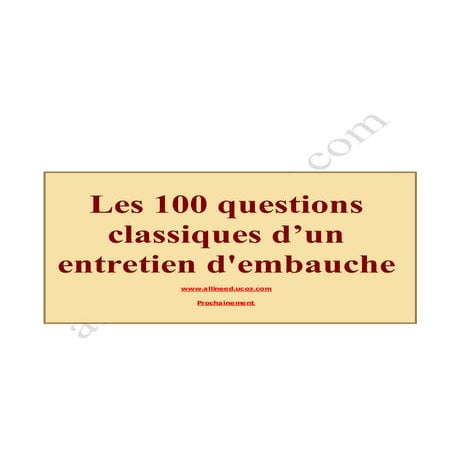 Les 100 Questions Classiques Dun Entretien Dembauche